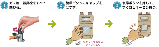 マイコンメータがガスを遮断した後、自分で出来る復帰方法